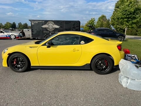 The best place to start when it comes to stopping, is brake fluid, and pads. Flush out the factory brake fluid with some motorsports high temp brake fluid. In my BRZ I used Motul RBF 600 which is good to some ridiculously high temperature. This will stop the fluid from boiling after multiple hard stops, and give you some consistency and confidence in your braking. You can typically pick this stuff up on Amazon here if you're in the US, and here if you're in Canada.