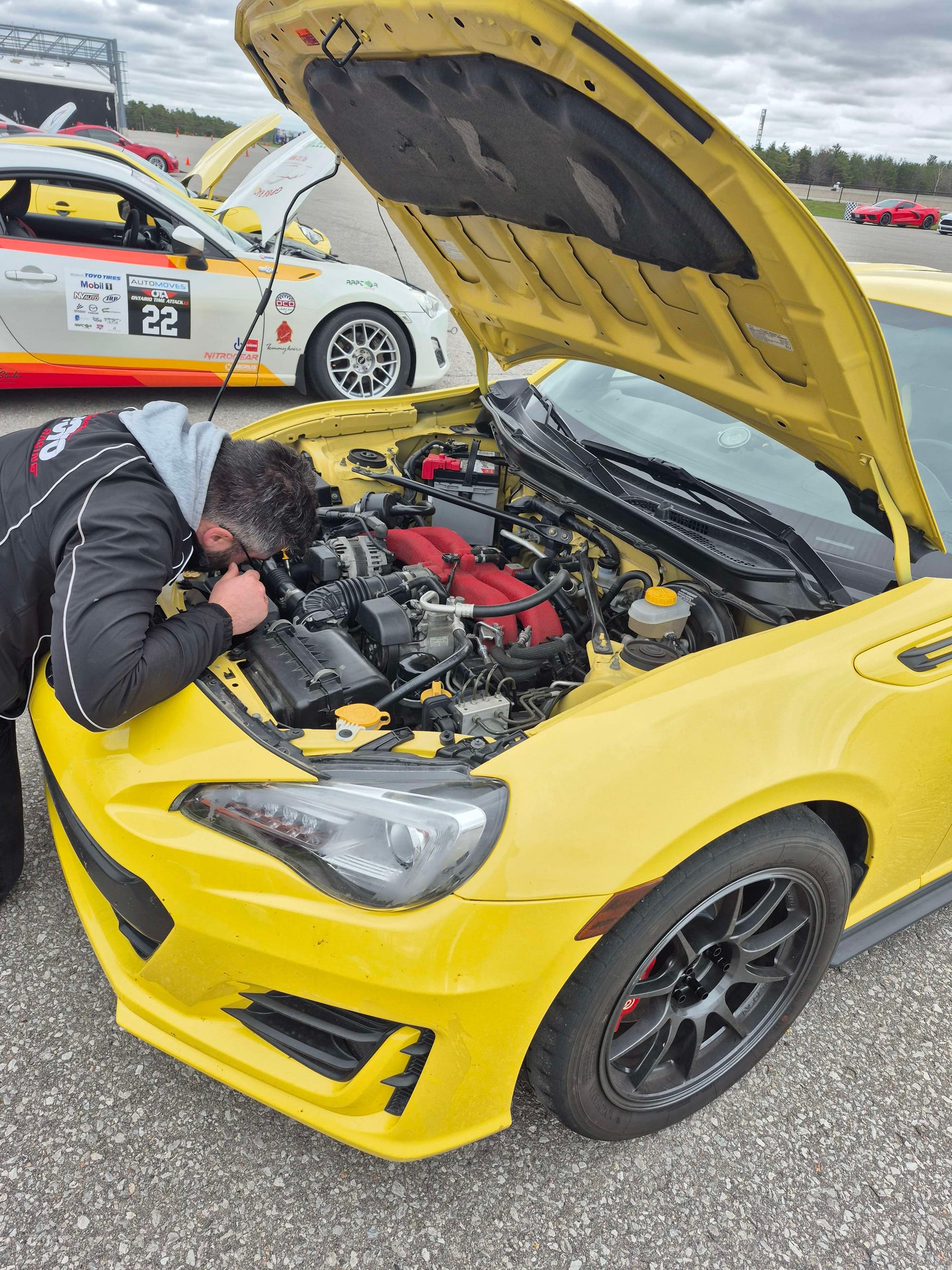 Day 2 of the weekend was the first competition event, but this time, everyone was already at the the track, so nobody could pick me up coffee on the way. So I took it upon myself to be the one to go to Tim Horton's and grab coffees for those who wanted, and also used it as an opportunity to try to figure out where my car was leaking from. When I arrived back, the XIII Motorsports trailer was in the paddock so I parked next to it and left them the key while I went in to the main building to help with registration.